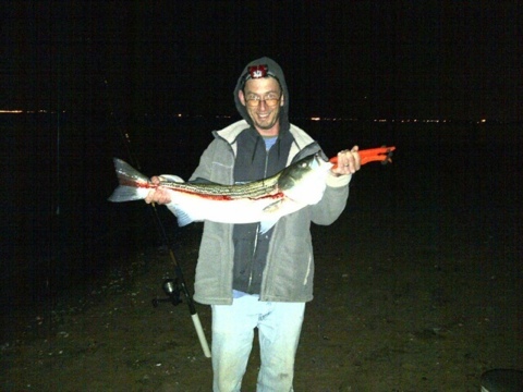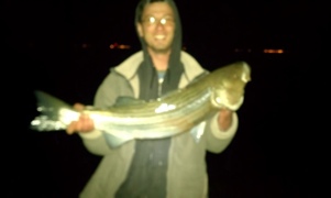 Jan managed to drive 4 hooks home and come up with all four stripers in the 20-22 lbs range. He went home, well past midnight, tired but with a smile on his face.