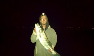 Bunker chunked and dead-sticked on both sides of the tide was the menu for the night and while the other poles around him were harassed for 6 hours but nothing hooked up…